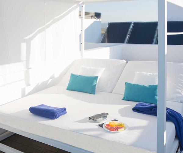 The main attraction of the Junior suites is their own individual solarium on the top floor with a Balinese bed, shower and jacuzzi. This accommodation also has cold-hot air conditioning, Wi-Fi, a phone, a safe (for a charge), SAT TV, a bathroom with a shower, toiletries, a hair dryer, a sofa bed (for two people to share) and a balcony.